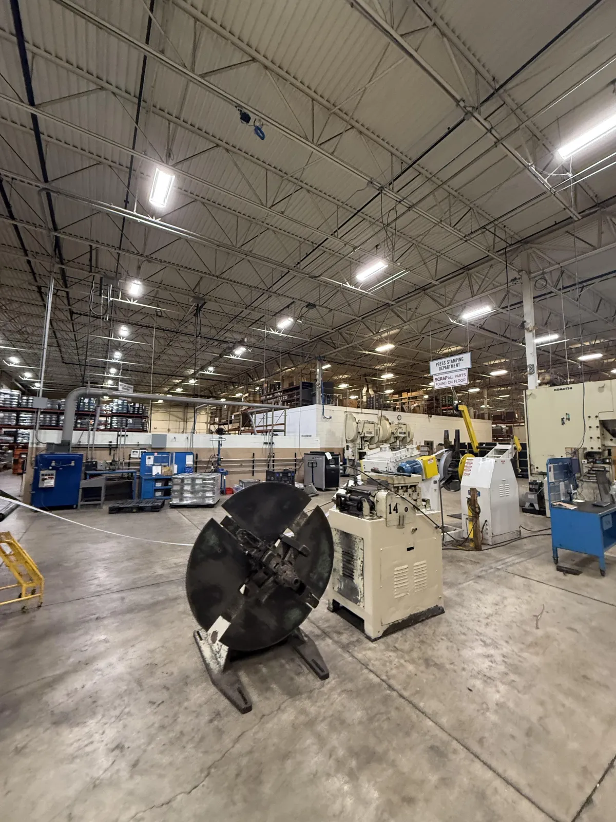 Equipped with heavy 3-phase power, high clear heights, and multiple docks and drive-ins—ideal for stamping, forming, assembly, and high-throughput operations.