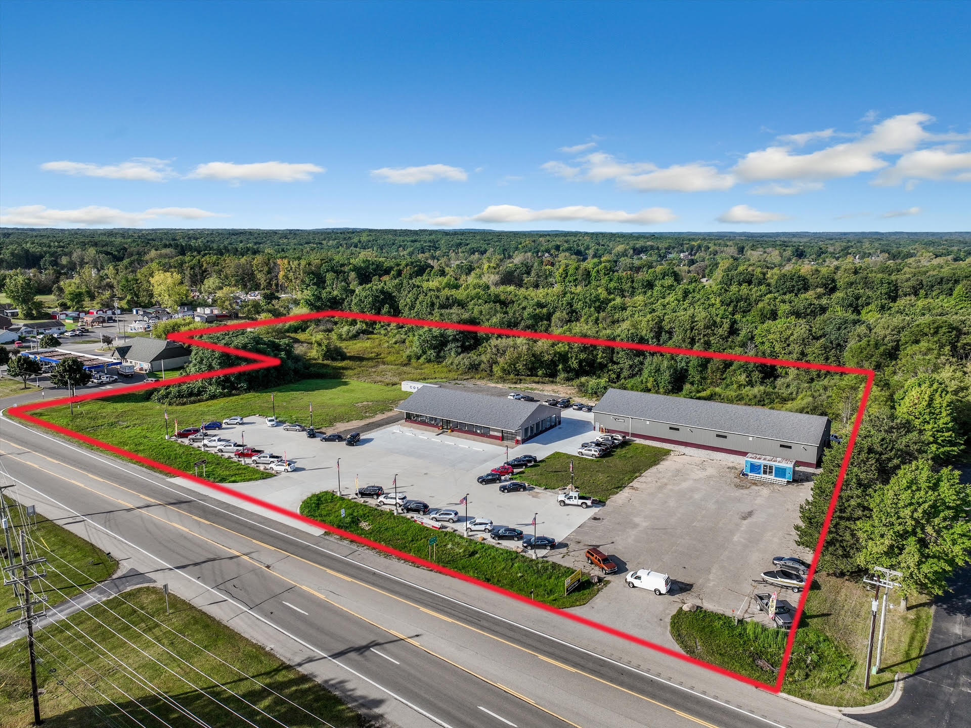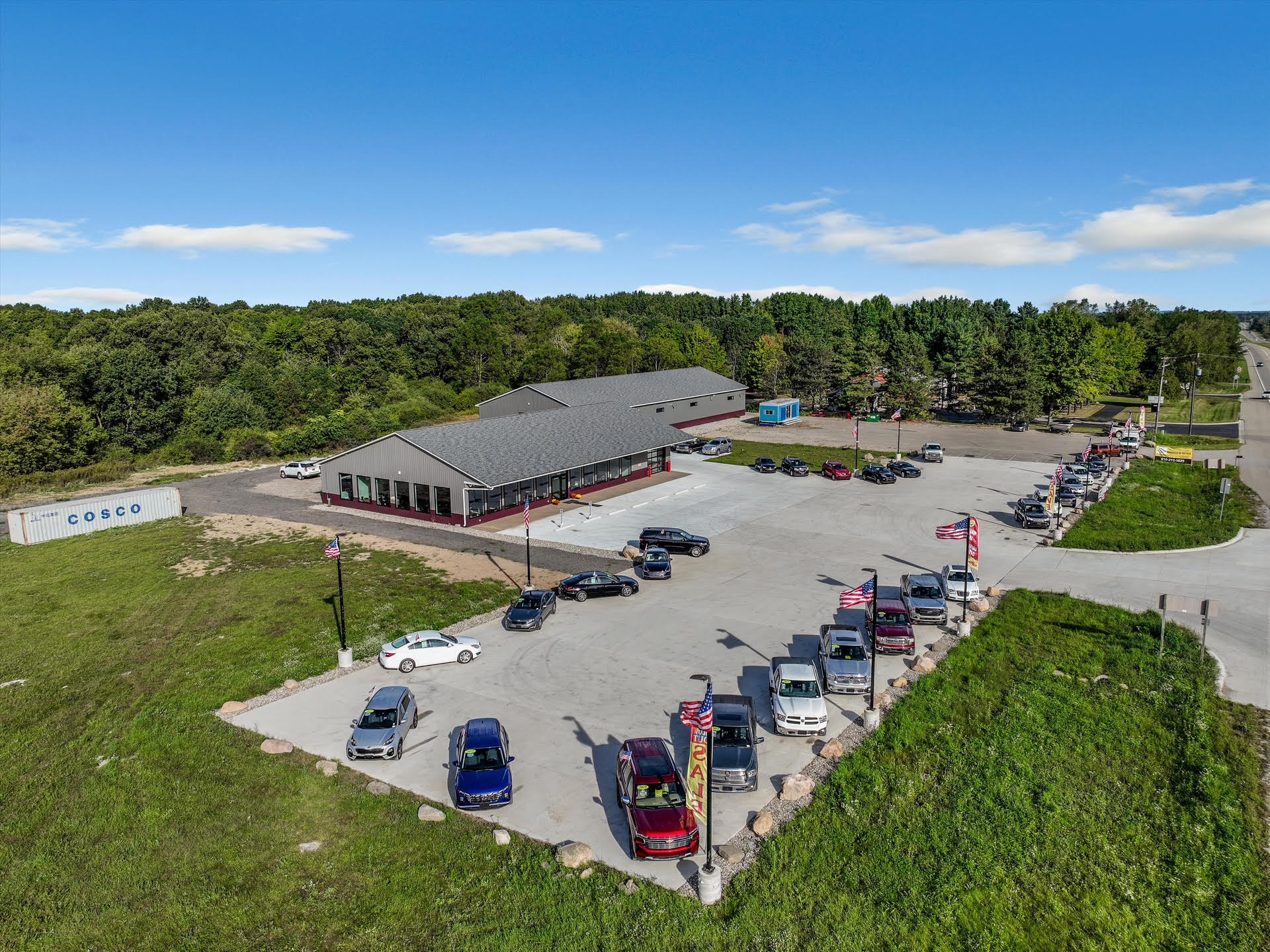 The 9-acre parcel provides substantial space for future building expansion, outdoor storage, vehicle display areas, or additional commercial development. With a large paved lot designed for approximately 250 vehicles, the site supports high-volume operations and long-term growth potential.